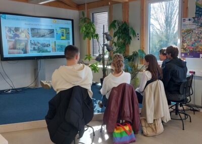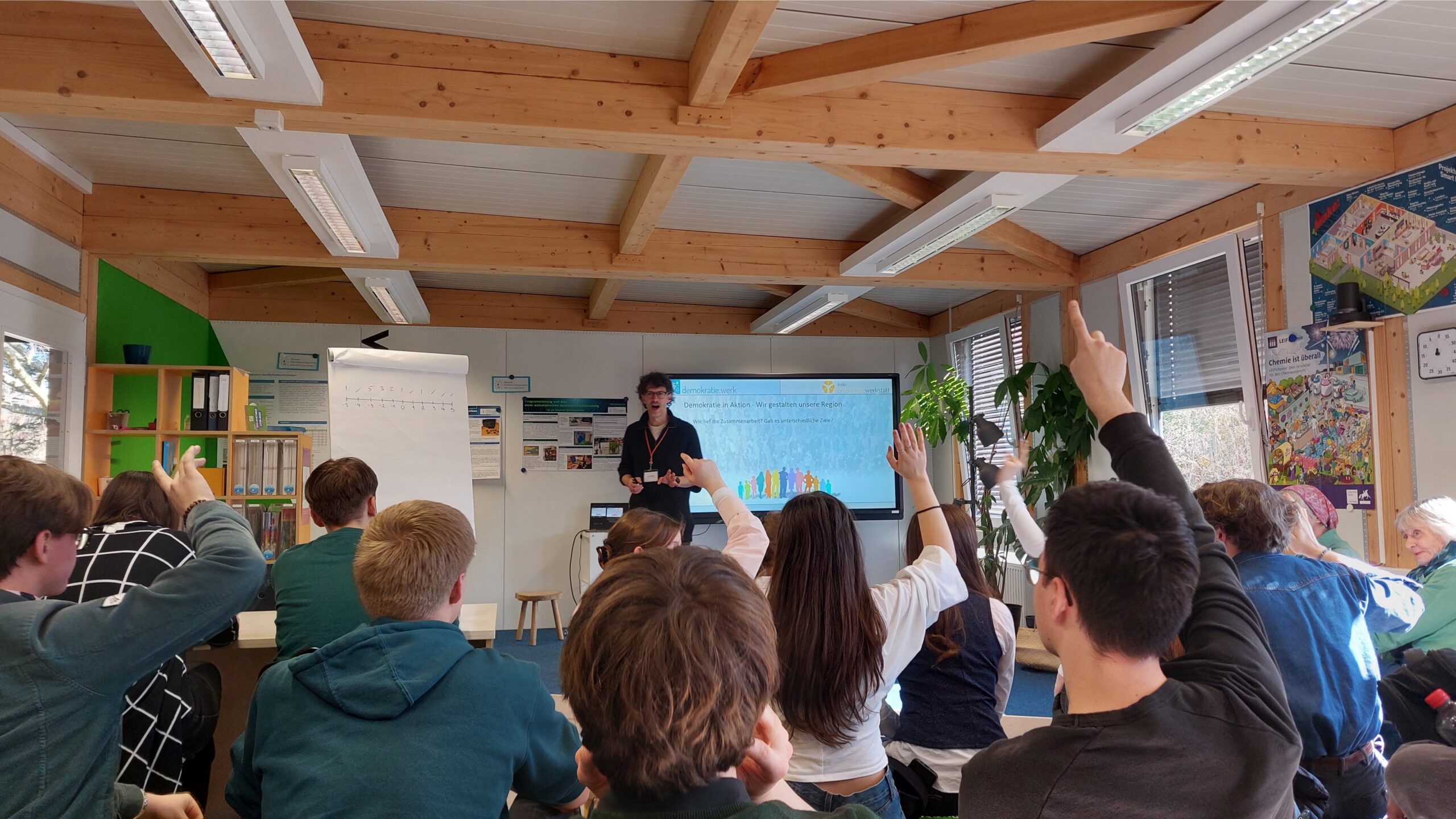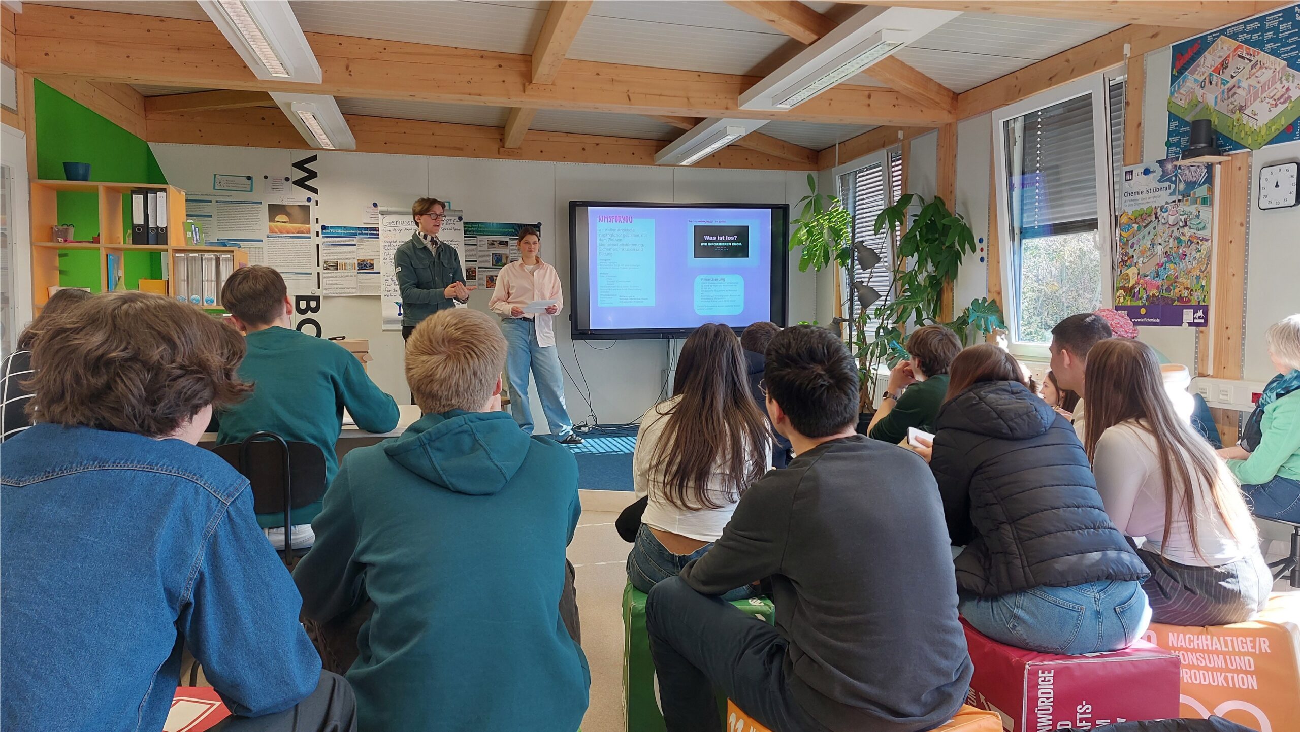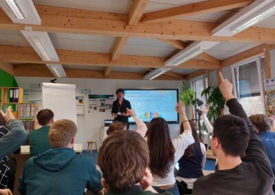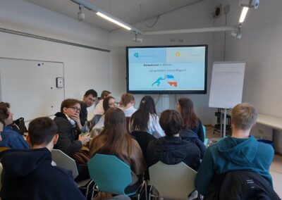 Im Laufe des Tages wurde viel gegrübelt, diskutiert und sich ausgetauscht. Die Gruppen sammelten Beobachtungen, entwickelten Vorschläge und überlegten gemeinsam, was auf kommunaler Ebene – genauer in Neumünster – überhaupt möglich ist. Besonders spannend war am Ende die Präsentation vor Publikum und Gästen: Hier stellten die Schülerinnen und Schüler ihre Ideen lebhaft und überzeugend vor, verteidigten ihre Standpunkte und bekamen wertvolle Rückmeldungen.