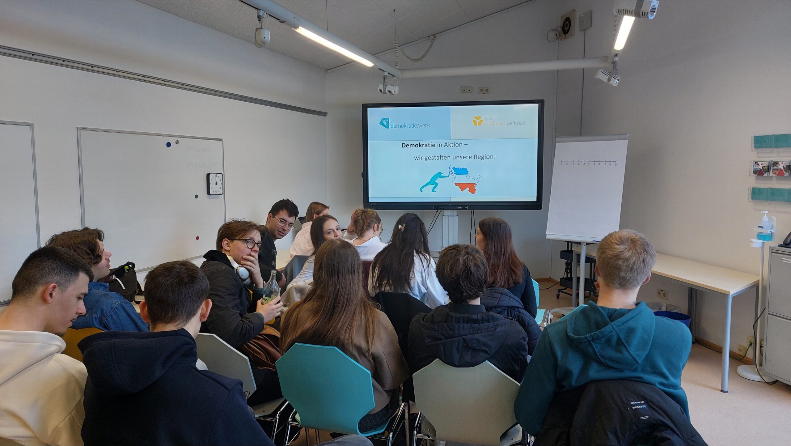 Am Mittwoch, 18.03.2026, ging es für das WiPo-Profil mal woanders früh los: Um 08:15 Uhr trafen sich alle bei bestem Sonnenschein auf dem Campus der CAU Kiel in den Räumen der Kieler Forschungswerkstatt. Beste Voraussetzung für einen gelungenen Start in einen spannenden Tag in echter Uni-Atmosphäre!